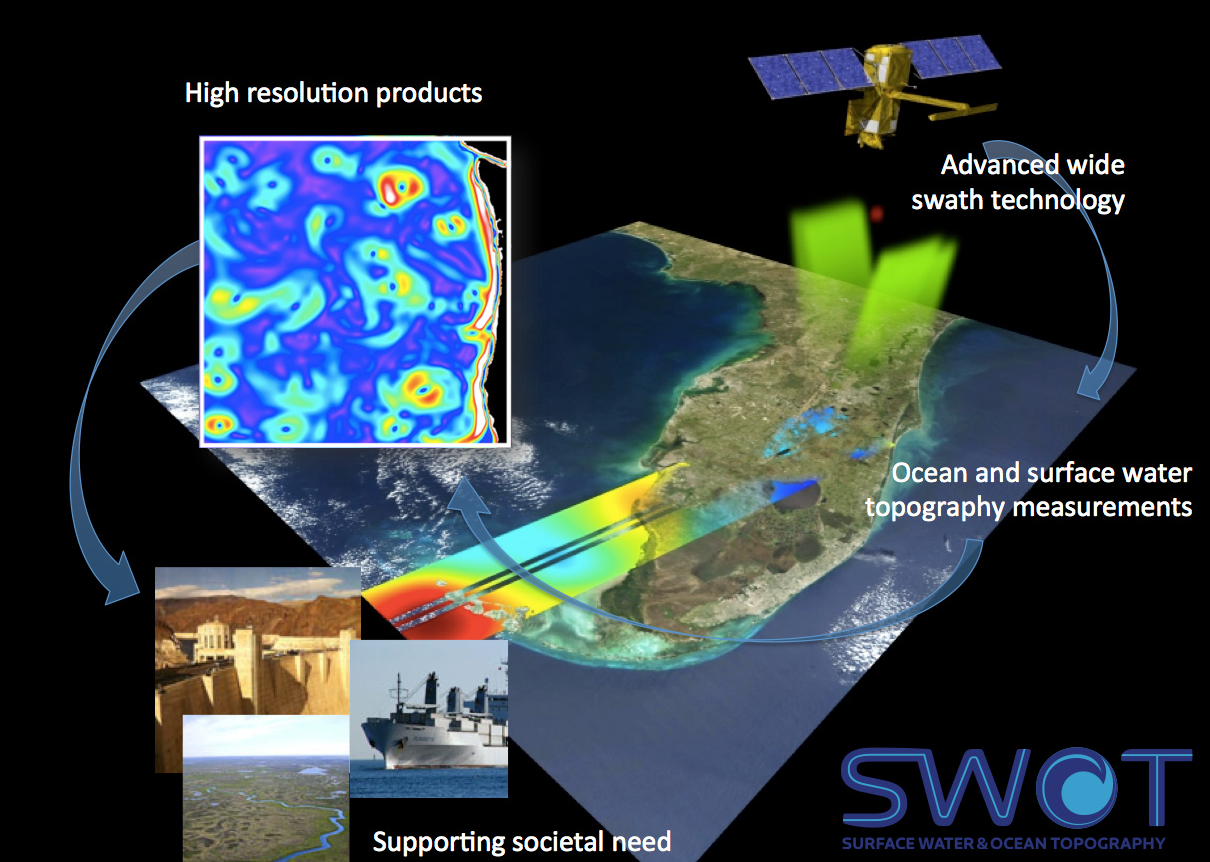 Unlike traditional altimetry (narrow tracks), SWOT provides wide-swath (~120 km) 2D measurements of water surface elevation, enabling global mapping of rivers, lakes, and reservoirs. - New hydrologic variables from SWOT